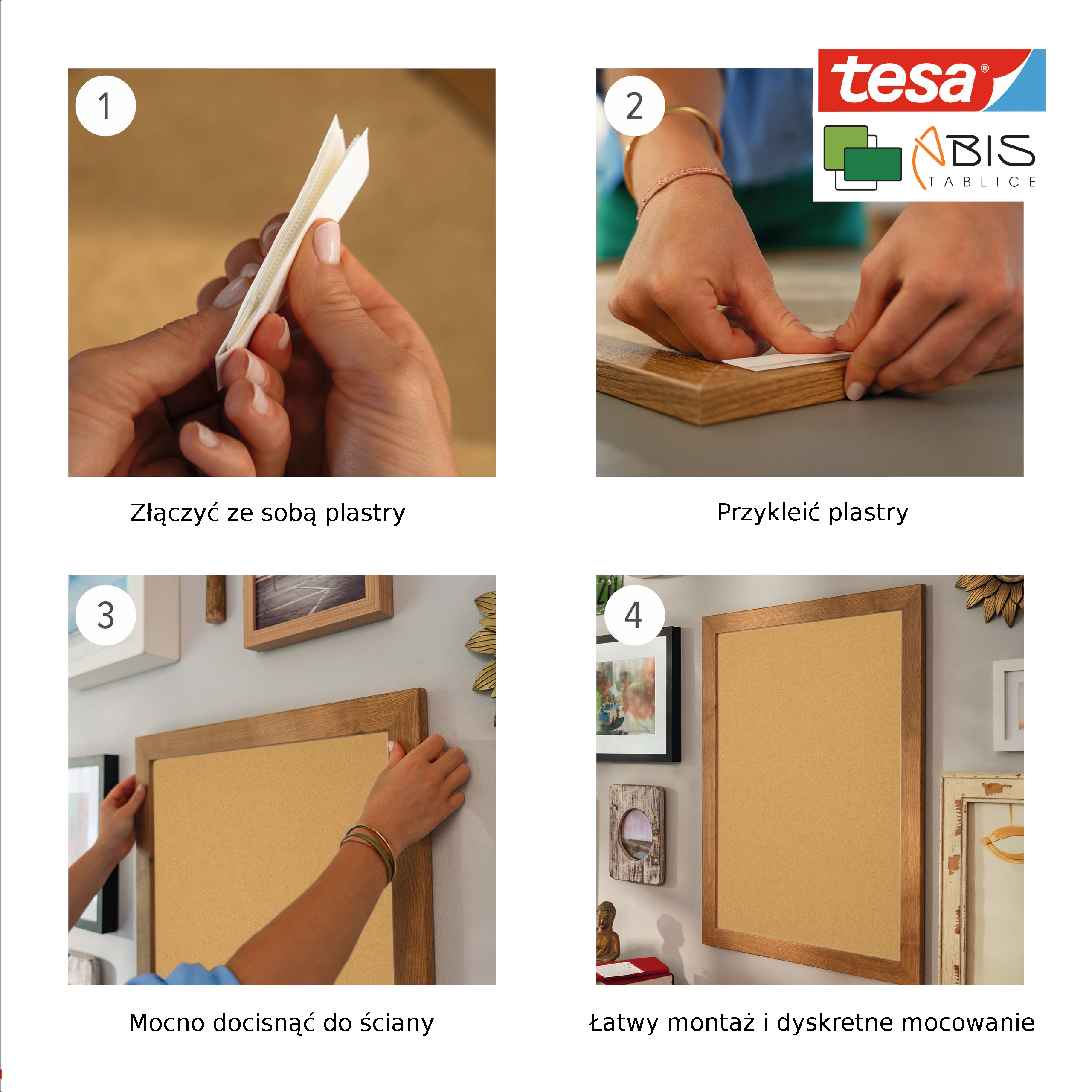 Rzepy samoprzylepne Powerstrips® CLICK stanowią idealne rozwiązanie do wieszania tablic bez wiercenia ściany, są doskonałą alternatywą dla gwoździ.